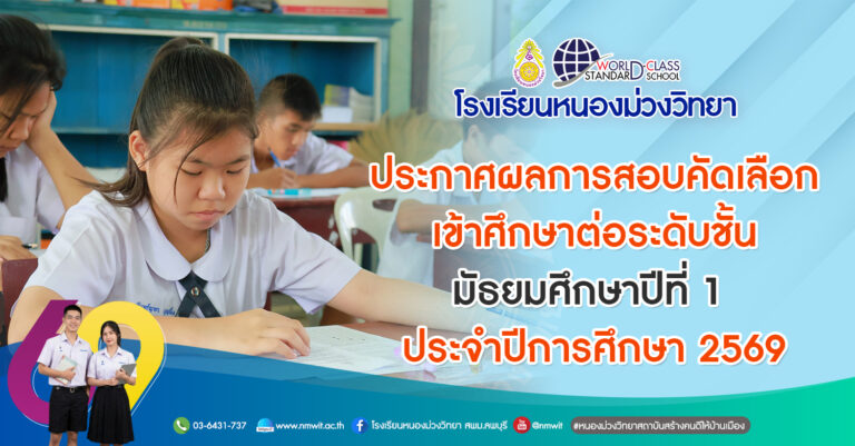 ให้นักเรียนที่ผ่านการสอบคัดเลือก รายงานตัวและมอบตัวในวันพฤหัสบดีที่ 18 พฤษภาคม 2566 เวลา 08.00 น. ณ ห้องทะเบียนฯโรงเรียนหนองม่วงวิทยา