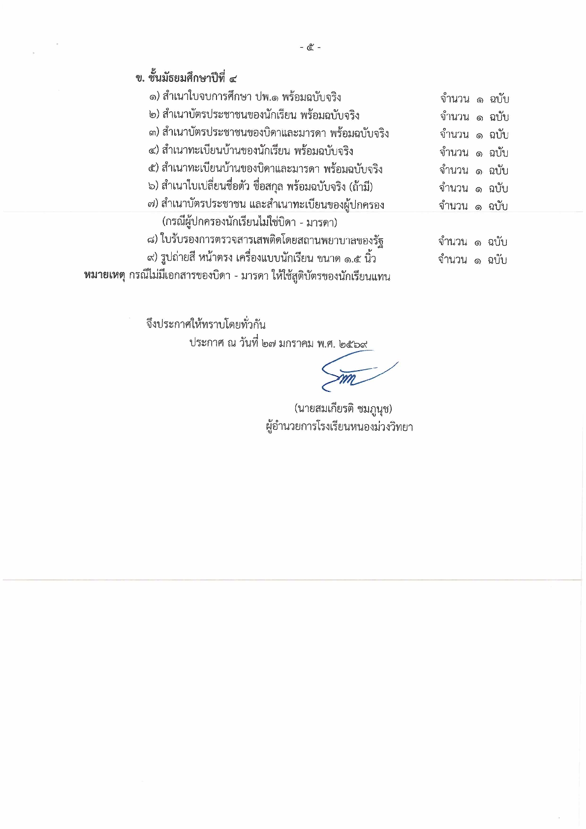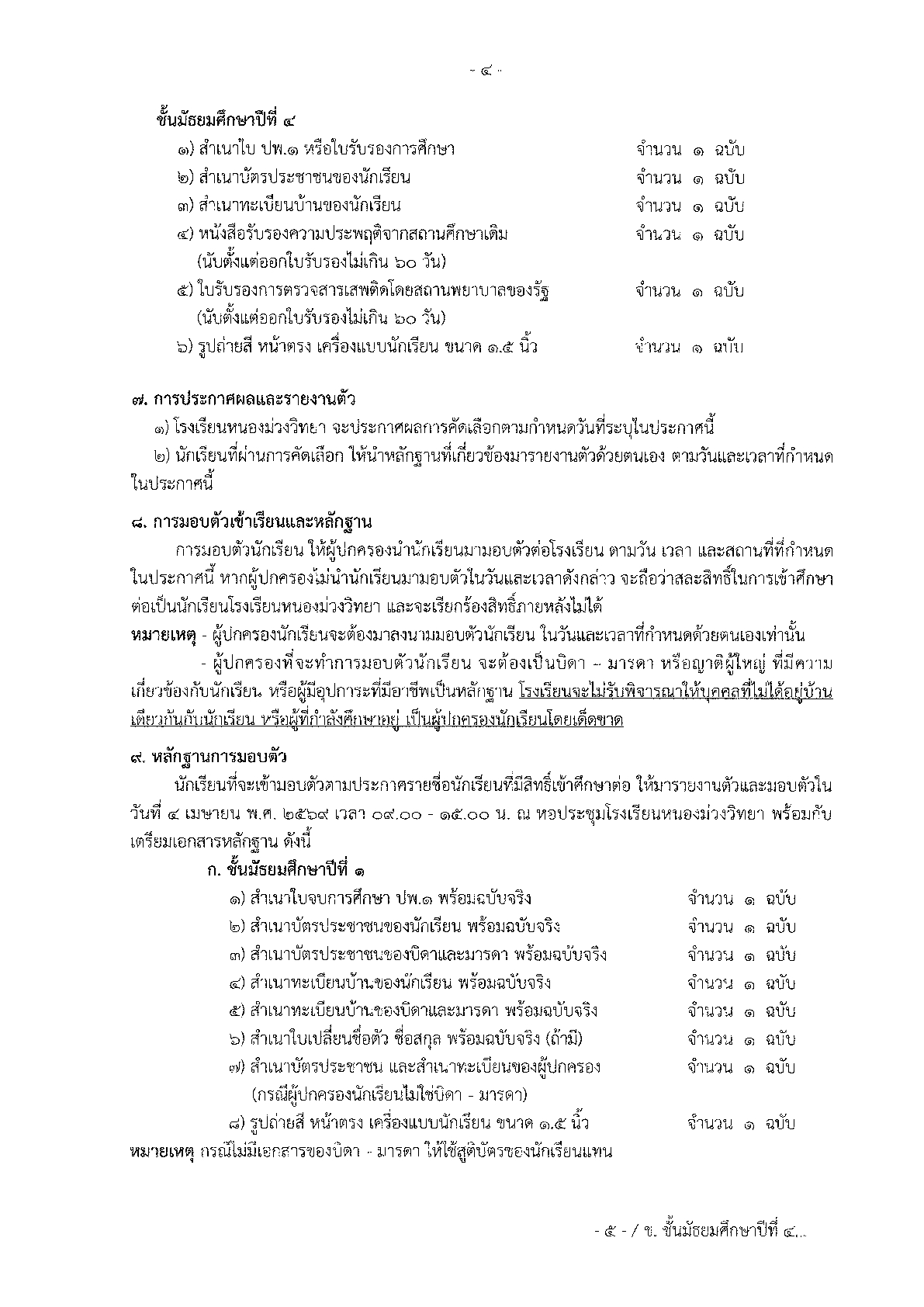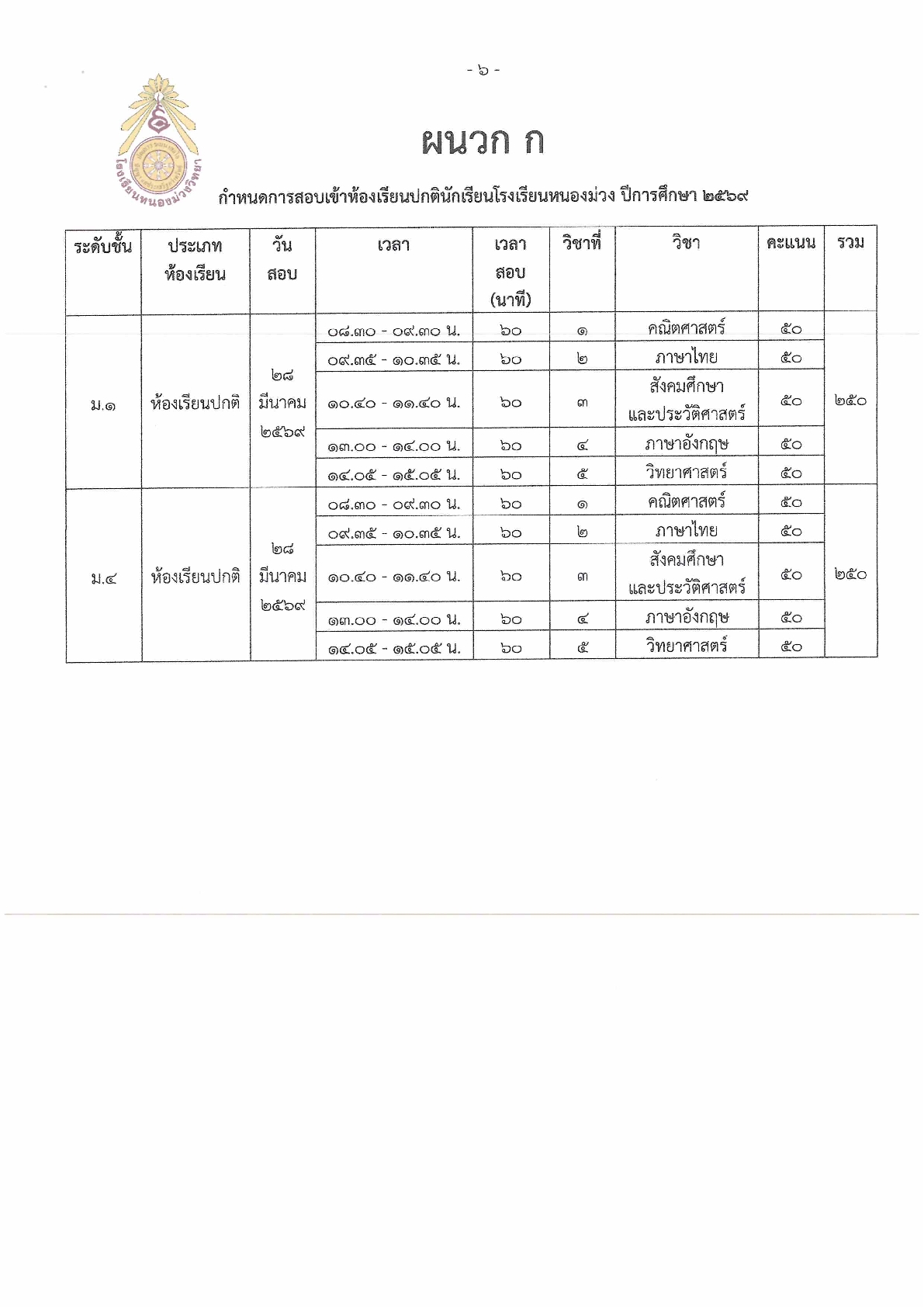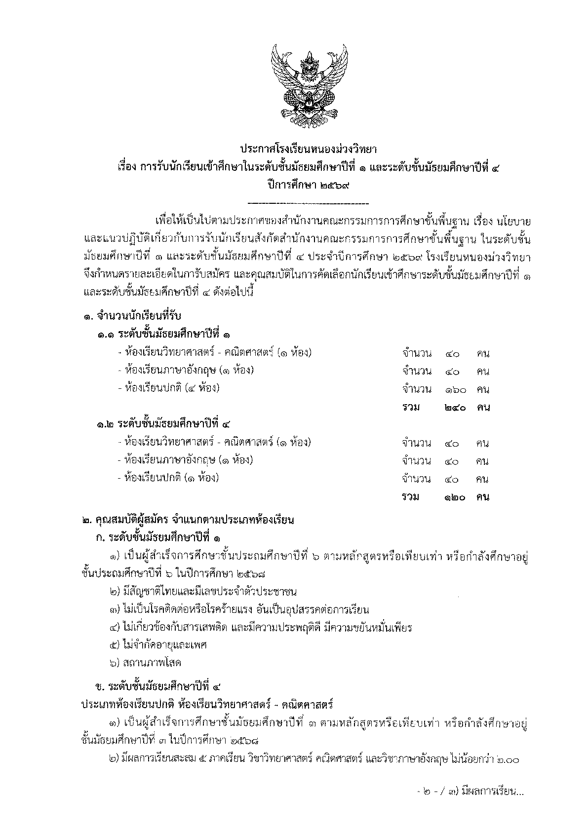 ประกาศฯรับสมัครนักเรียนใหม่ ชั้นมัธยมศึกษาปีที่ 1 และ ชั้นมัธยมศึกษาปีที่ 4 ปีการศึกษา 2569 โรงเรียนหนองม่วงวิทยา