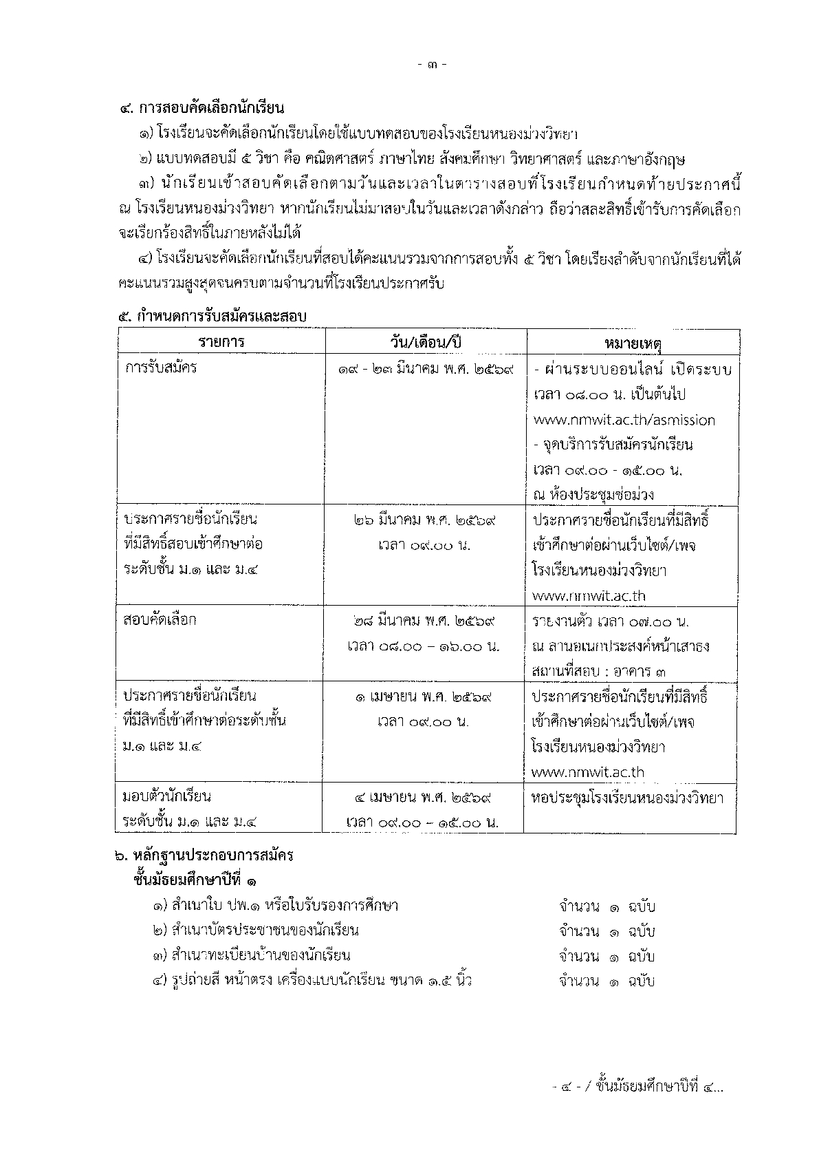 และระดับชั้นมัธยมศึกษาปีที่ 4 ปีการศึกษา 2569